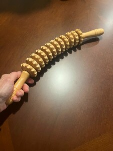 O massageador muscular de madeira é um milagre! O rolo funciona perfeitamente para músculos tensos. Após duas semanas de uso a dor nas costas diminuiu drasticamente.